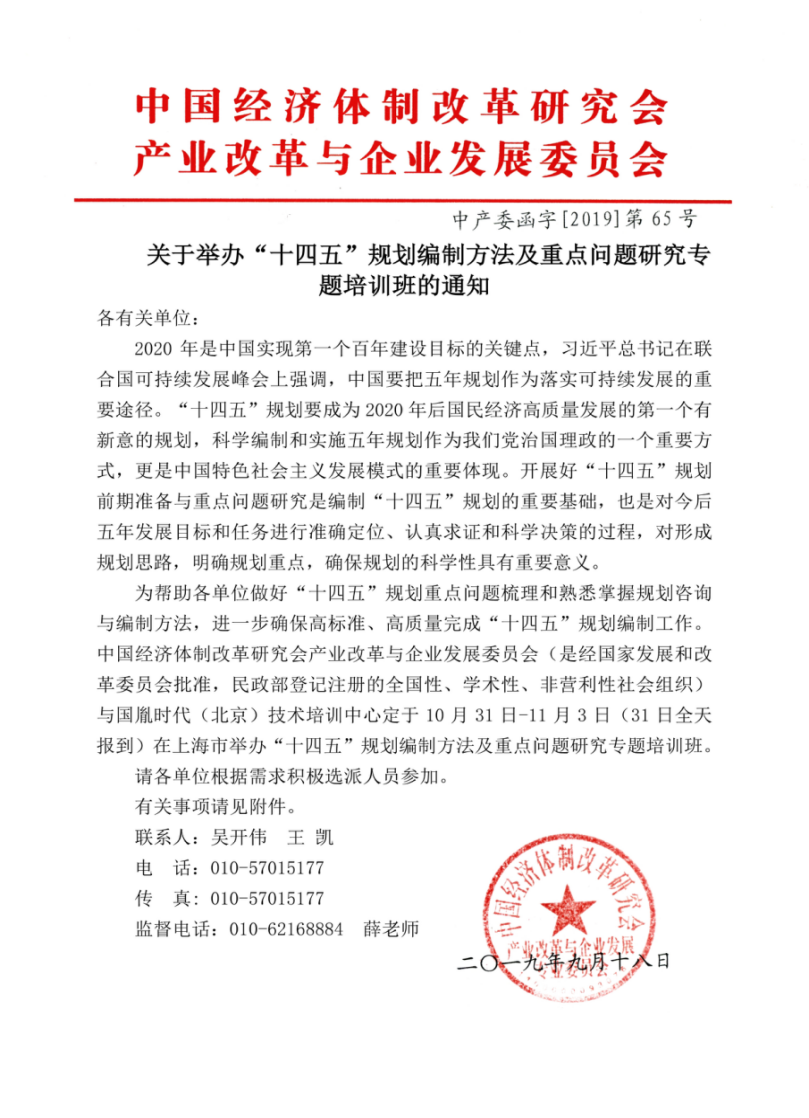 關于舉辦上海十四五規劃編制方法及重點問題研究專題培訓班的通知