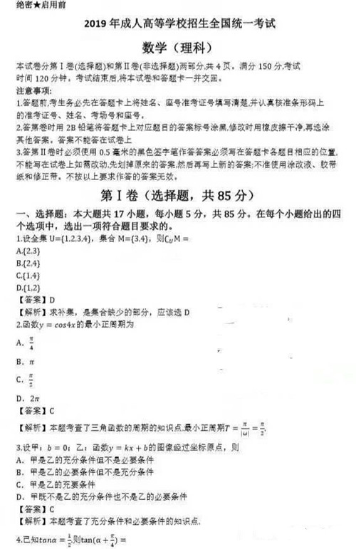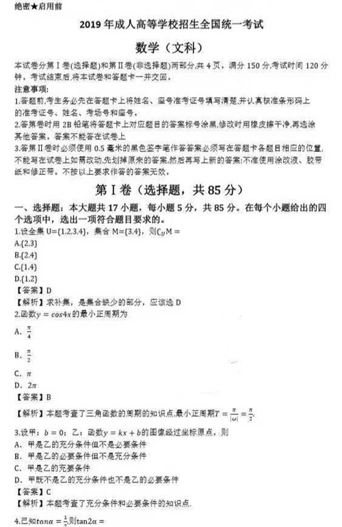 2019年成人高考真題及答案新鮮出爐,持續更新中!