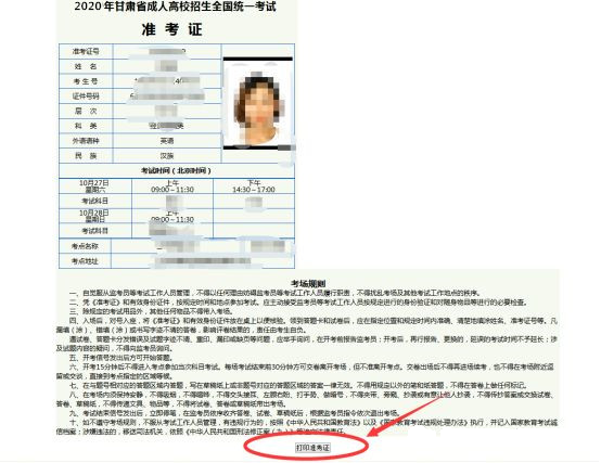 各位同學,成考準考證于明日(2020年10月21日)開始打印,溫馨提示: