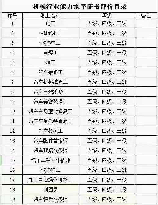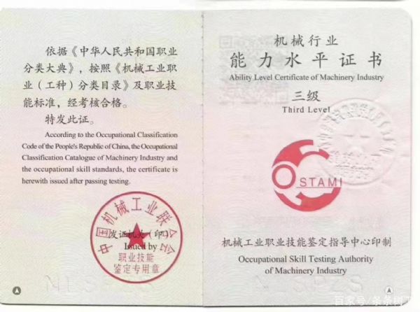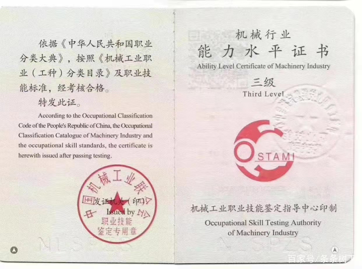 機械行業能力水平證書