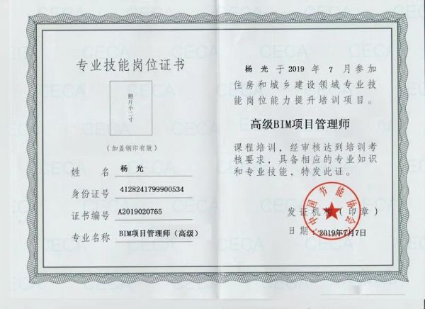高級BIM項目管理師證書