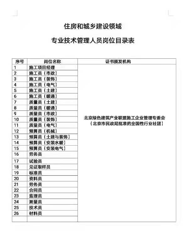 北京綠色建筑產業聯盟崗位證書